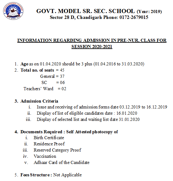 GOVERNMENT MODEL SR. SEC. SCHOOL, Sector 28D, Chandigarh